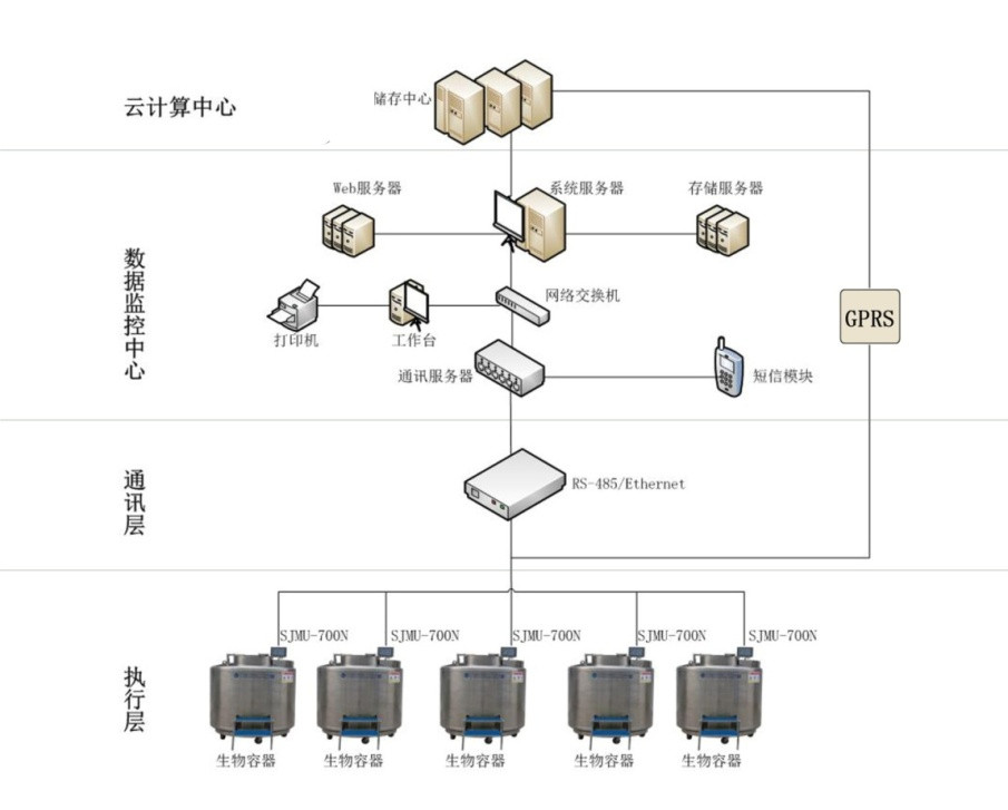 1、液氮罐監控:實時采集低位、高位溫度,檢測液位高度;根據液位值和溫度值自動開關進液電磁閥;發送報警信息。